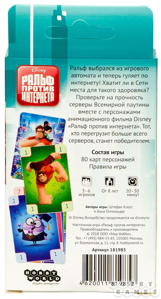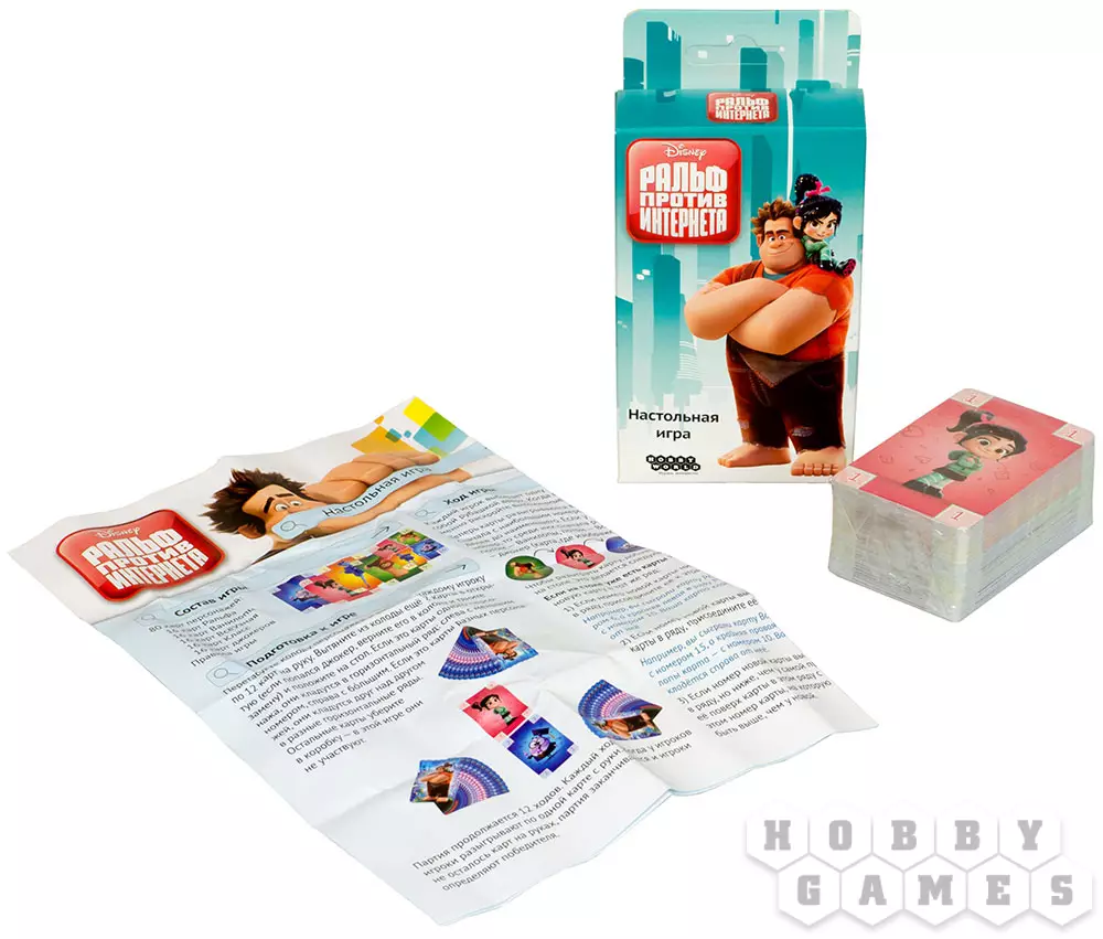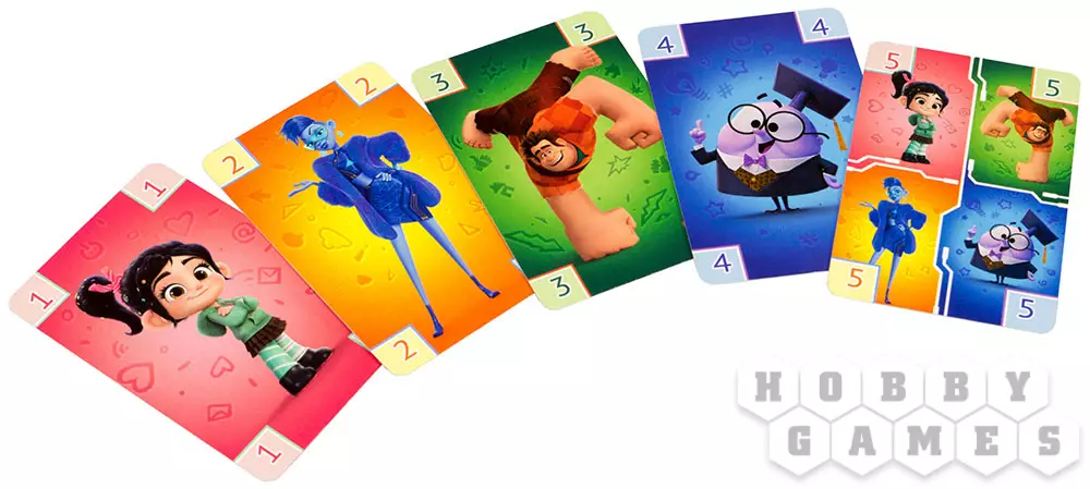 Каждый игрок получает на руки двенадцать карт. На картах могут быть изображены различные персонажи мультфильма – это Ральф, Ванилопа, Всёузнай и Класс, а на карте джокера изображены сразу все персонажи. Это различные масти. Помимо этого, карты обладают различными номерами, которые определяют, в каком порядке будут разыгрываться карты.