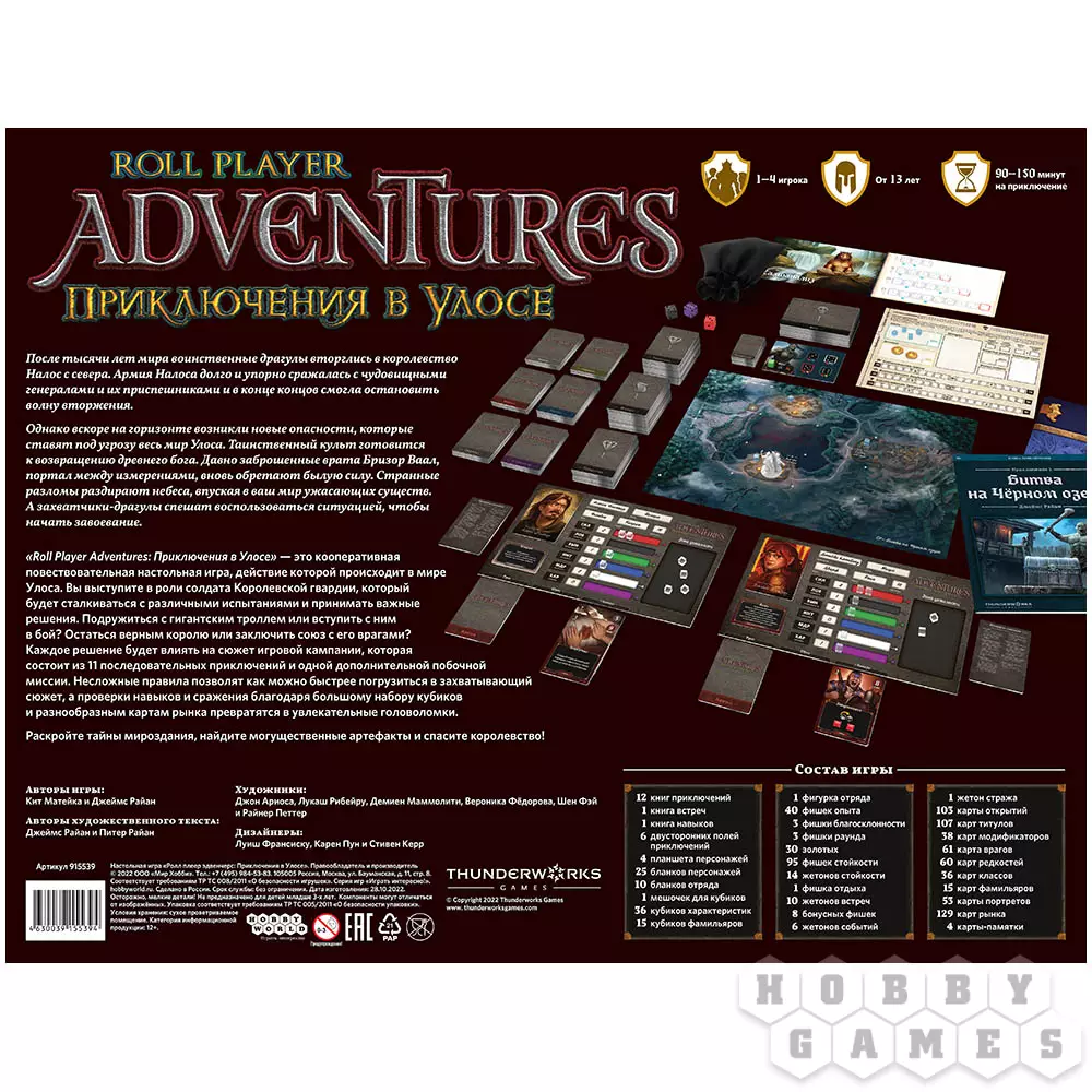 "Roll Player Adventures: Приключения в Улосе" — это кооперативная повествовательная настольная игра, в которой вам предстоит спасти мир Улоса! В роли солдат Королевской гвардии игроки будут принимать решения, от которых зависят судьбы как отдельных людей, так и целых городов – а то и стран!
