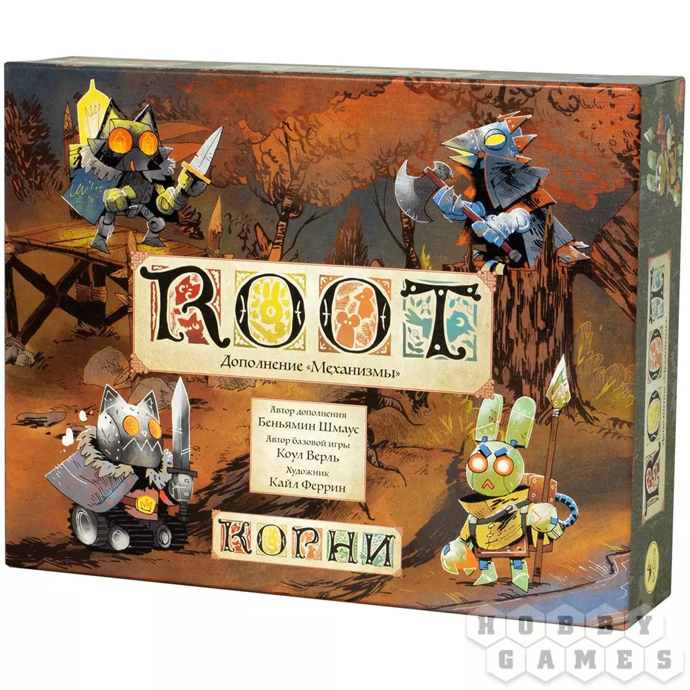 Дополнение "Механизмы" привносит в Root четыре новые автоматические фракции, которые можно добавлять к игре в одиночку, вдвоём или втроём. Теперь Механическая Маркиза из базовой коробки сменится доработанной версией 2.0, гораздо более агрессивной и опасной – её патрули наводняют лес с неслыханной скоростью. Также к игре добавятся надменные и яростные Крылатые Киборги, радикальные бунтари из Синтетического Союза и скрытный Ботяга, что преследует свои цели на тёмных лесных тропах. С "Механизмами" одиночная игра в Root преображается и выходит на совершенно новый уровень!