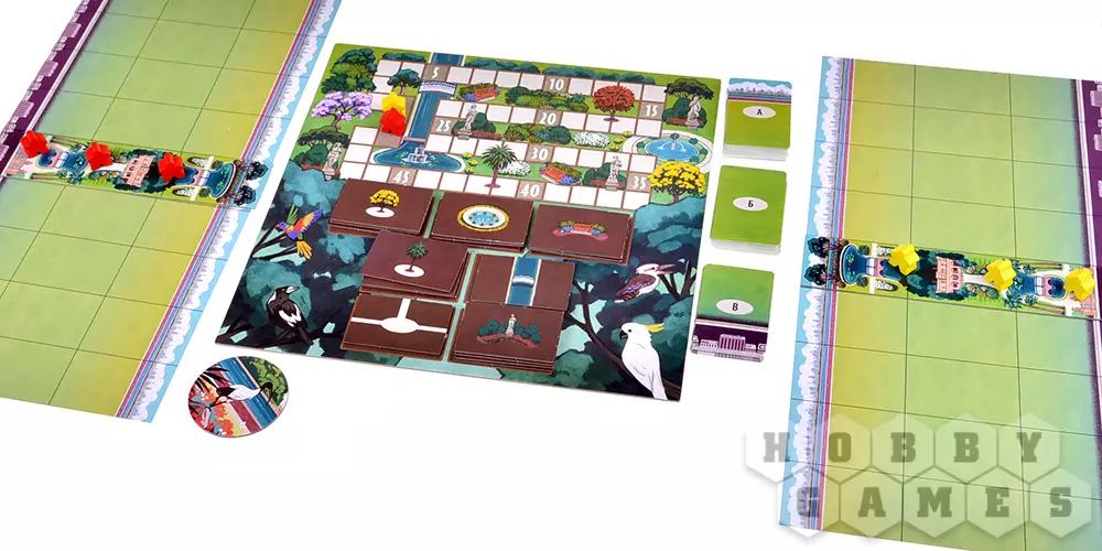 Ваша задача – создавать на своём планшете туристические маршруты при помощи карт, изображающих различные элементы парка. Рисунки на картах должны сочетаться друг с другом, а потому на ваших глазах будет возникать настоящее полотно с улочками, деревьями и арт-объектами. Игроки выкладывают карты по очереди, выбирая их из общего запаса в зоне рынка.
