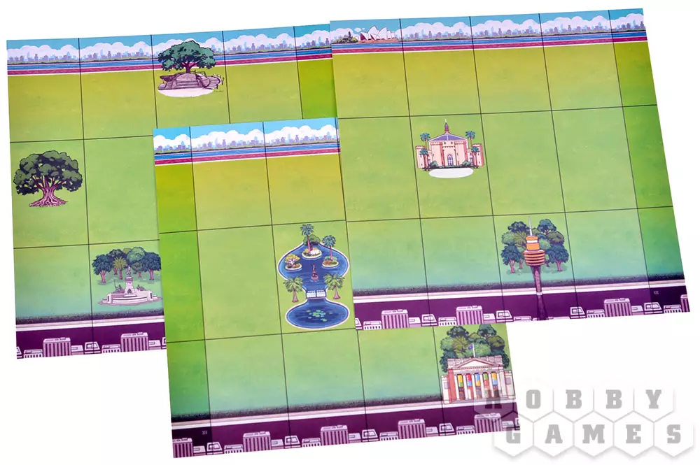 Когда карта выложена, вы передвигаете по растущему маршруту фигурку посетителя и получаете очки в зависимости от того, насколько интересным был путь! Особенно занятно, что карты достопримечательностей вдохновлены реальными объектами – в игре вы найдёте и легендарный оперный театр, и Сиднейскую консерваторию, и Государственную библиотеку, и Сиднейскую телебашню (самое высокое сооружение города!), и многое другое: взять хотя бы форт Денисон – крепость, что была построена аж в начале XIX века.