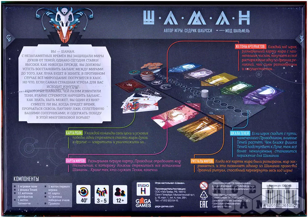 "Шаман" порадует как любителей напряжённых соревновательных игр, так и ценителей качественного оформления. Таинственные узоры, блестящие линии, космическое игровое поле – всё это с первых же минут погрузит вас в мир магических хитросплетений.