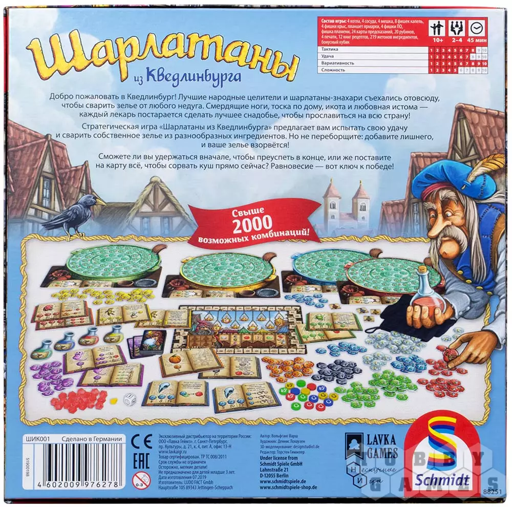 Александр Шаталов19.08.2020 12:45Если устали от кубиков, но любите рандом, то эта игра отличный вариант! Здесь каждый участник собственноручно управляет случайностью, которая влияет на ход и прогресс его игры. Задача в «Шарлатанах» простая – сварить как можно больше зелья, потому что получишь больше монет и победных очков, но главное не переборщить и не взорвать свой котел! Игра располагает несколькими видами жетонов ингредиентов, которые благодаря книгам рецептов по-разному взаимодействуют друг с другом и приносят различные бонусы и возможности. За счет этого реиграбельность очень высокая – на коробке написано о 2000 возможных комбинаций рецептов! Нам игра очень понравилась с самой первой партии. Когда хочется весело провести вечер, мы раскладываем «Шарлатанов» и играем сразу две-три партии под ряд! Игра однозначно стоит внимания и прекрасно играется разным составом участников, что вдвоем, что в троем, что в четвером. Качество компонентов отличное, так как игра печаталась вместе с мировым тиражом в Германии. -