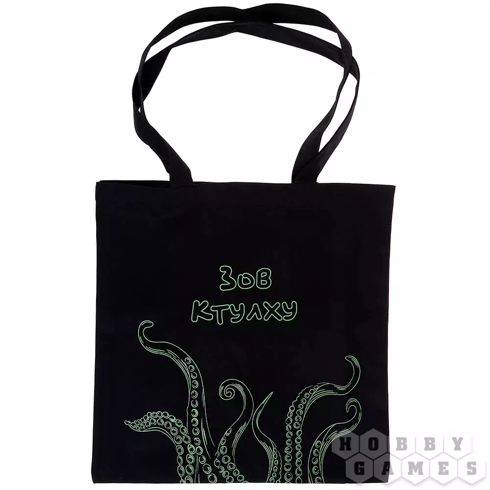 Чёрный цвет всегда в моде, а классный принт с щупальцами, знакомый всем любителям вселенной Лавкрафта и нанесённый с использованием шелкографии, завершает украшение этого аксессуара. Изготовлен шоппер из хлопка с добавлением синтетического волокна для большей прочности. Можете не сомневаться, этот красавец способен перенести в себе множество коробок!