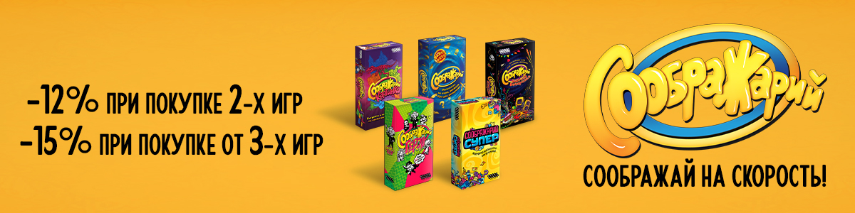 С 17 по 30 ноября мы дарим отличные скидки на эти невероятно забавные и быстрые игры. Чем больше коробок вы возьмёте, тем выгоднее станет ваша покупка: