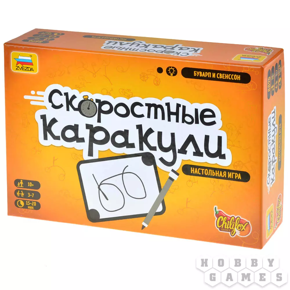 "Скоростные каракули" – весёлая настолка на ассоциации для шумной компании, в которой вам предстоит рисовать как можно быстрее! В этой игре качество рисунка не имеет значения, важна только скорость! А победить можно, даже нарисовав простую загогулину.