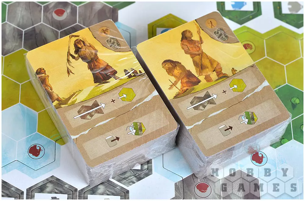 У каждого из вас на руках будут карты клана. Ваша задача – заработать максимально большое количество победных очков и добраться до конечной точки. Чтобы получать очки, вы будете каждый ход разыгрывать одну из своих карт, продвигаясь по полю и улучшая свои ресурсы, навыки и способности. А ещё не забывайте о наскальных рисунках и дополнительных целях, ведь они тоже могут помочь вам вырваться вперёд. Сможете ли вы пережить потоп и оставить своё послание потомкам?