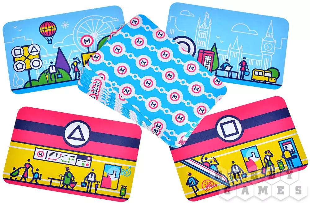 Партия длится четыре раунда, в течение которых вы спроектируете на своей карте Лондона четыре линии метрополитена. В игре 4 карандаша: голубой, красный, фиолетовый и зелёный. Вначале вы случайным образом получаете один из них, а его цвет определит станцию, от которой вы начнёте свой проект. Все станции на карте Лондона отмечены одним из четырёх символов: квадратом, кругом, треугольником или пятиугольником. Вы же помните, что у города есть свои требования к этому проекту? Инспектор текущего раунда открывает из колоды станций верхнюю карту. Символ на ней обозначает, к какой станции вы должны провести участок линии метро (начиная от своей стартовой). Затем открывается ещё одна, и ещё, и так до тех пор, пока не будет перевёрнута пятая карта с розово-жёлтым фоном.