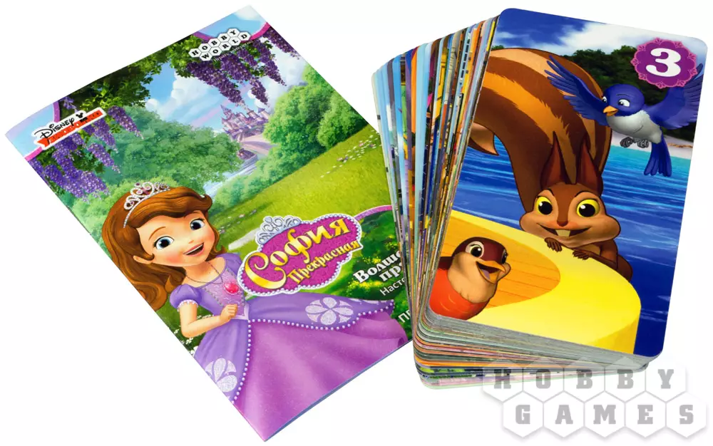 «София Прекрасная. Волшебные Прятки» — это детская настольная игра по мотивам популярного диснеевского мультика, повествующего про жизнь маленькой девочки Софии, которая по счастливой случайности стала настоящей принцессой! В этой игре вам встретятся любимые и знакомые персонажи, приятная рисовка карт, яркий мультяшный дизайн карт и простые правила! По своей сути игра напоминает прятки с участием персонажей из мультика, отлично развивает мышление, при этом является достаточно подвижной, а главное, весёлой игрой!