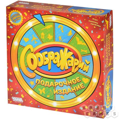 "Соображарий: Подарочное издание" – это коллекция лучших заданий из всей серии культовой игры, собранная в одном наборе. Вы сможете проверить свою находчивость и реакцию в динамичной настолке, где нужно быстрее всех подобрать слово под открытое задание и выпавшую букву.