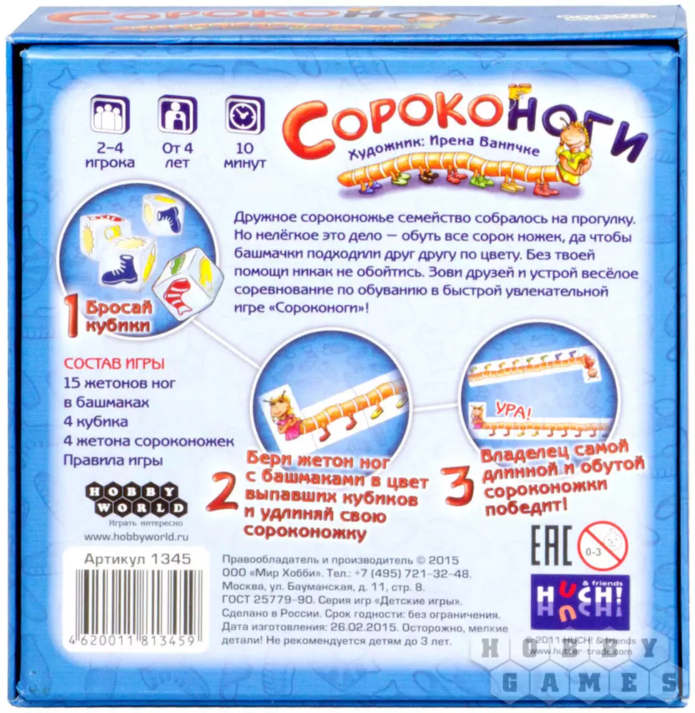 Собирай друзей и начинай веселое соревнование по обуванию в увлекательной и быстрой настольной игре "Сороконоги"!