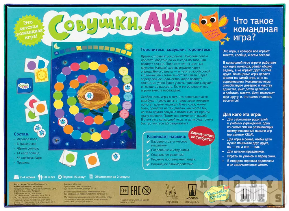 Игроки победят, если все совушки доберутся до дома вовремя, поэтому ребятам придётся учиться договариваться, играть в команде и помогать отстающим ради общей цели.