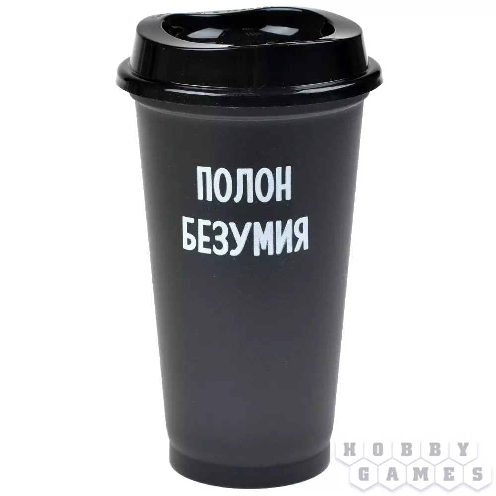 Стакан многоразовый с крышкой "Полон безумия"