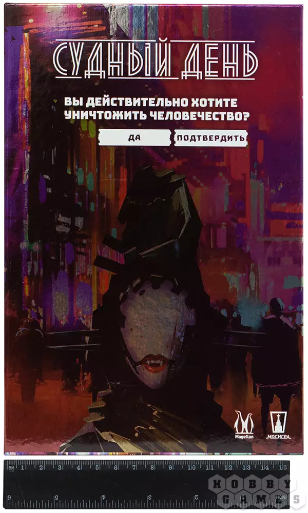 В настольной игре "Судный день" вам достаётся роль выживших людей, машин или изгоев. Люди пытаются выжить, машины уничтожают всё живое, а изгои пытаются обустроиться в новом мире. "Судный день" – это невероятная комбинация вечериночной игры с дедукцией и социальным экспериментом. Игрокам предстоит выяснить, кто есть кто и кто на чьей стороне, взять в руки оружие и уничтожить врагов. Сосредоточьтесь, возможно среди вас враги!