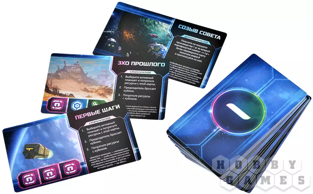 Стратегические – дают игрокам ресурсы для совершения отметок на планшетах