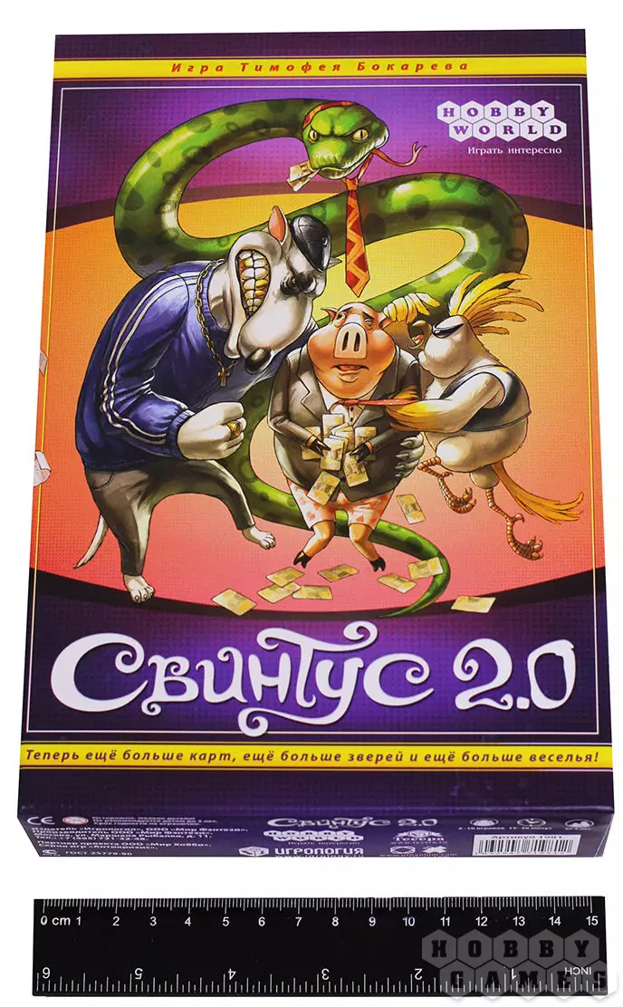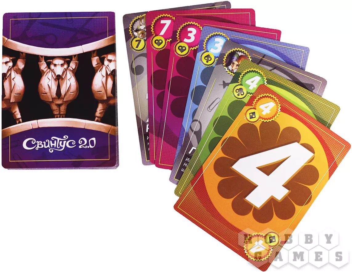 «Свинтус 2.0» — это настоящий свинячий конструктор, который содержит множество наборов карт, из которых вы уже сами вольны собрать подходящий под настроение, компанию и время вариант игры. Из дополнительных правил стоит отметить: