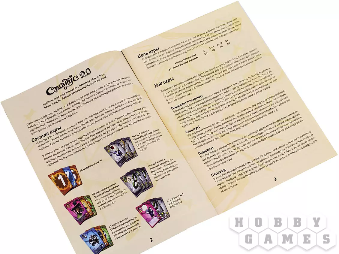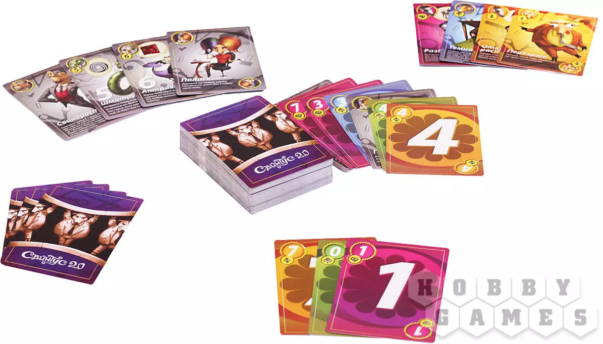- Специальные карты составляют одну из главных изюминок игры. Другая же заключается в нескольких "острых" правилах: правиле Свинтуса, перехвата и перевода карт! Благодаря всем этим картам, входящим в состав настольной игры "Свинтус 2.0", Вы получите от каждой партии незабываемые впечатления