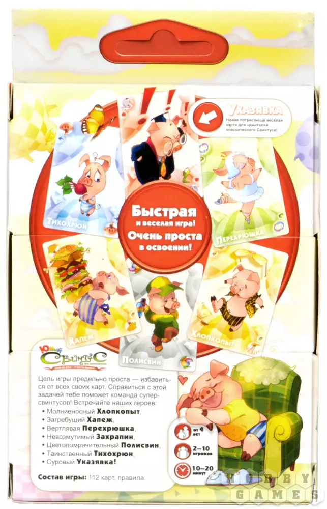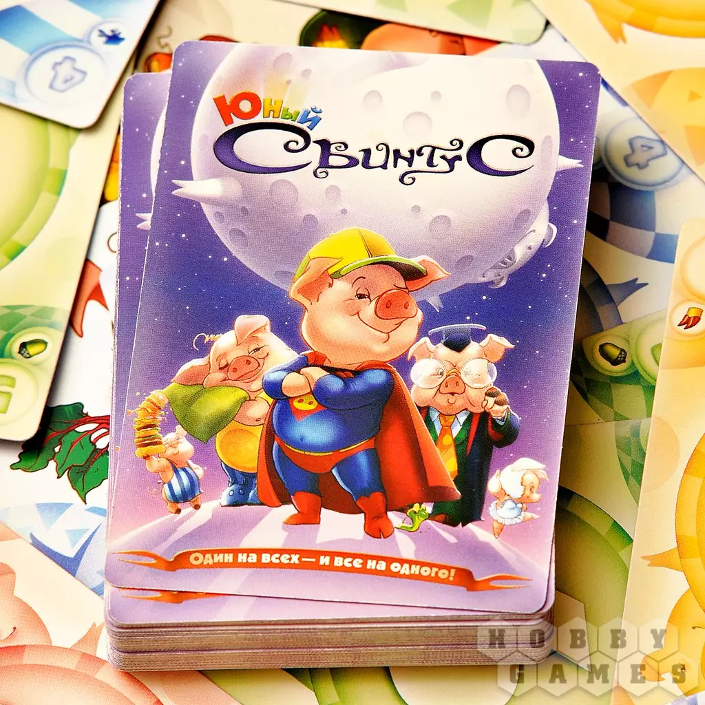 Надежда31.03.2022 17:18Мне эта версия Свинтуса нравится (взрослую я не заценила из-за героев): очень миленькие маленькие поросятки, интересные правила. Посидеть помолчать на тихохрюне- это та еще задачка для деток. Указявка- любимая карта детей. Покупала эту игру уже давно, когда сыну было 4. Сейчас ему 8, а дочке 4, 5 и мы теперь играем в нее втроем))) Удобно взять с собой в дорогу. -