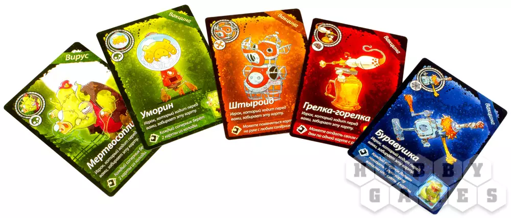 Помимо нового сеттинга и нового дизайна карт, настольная игра "Свинтус Зомби" версия порадует вас совершенно новыми специальными картами вирусов и вакцин. Эти карты норовят остаться у вас на руках, а, чтобы их сбросить, нужно потрудиться. Три новых правила дополняют этот новый набор карт. В остальном же перед вам старый добрый «Свинтус», играющий новыми мрачными цветами…