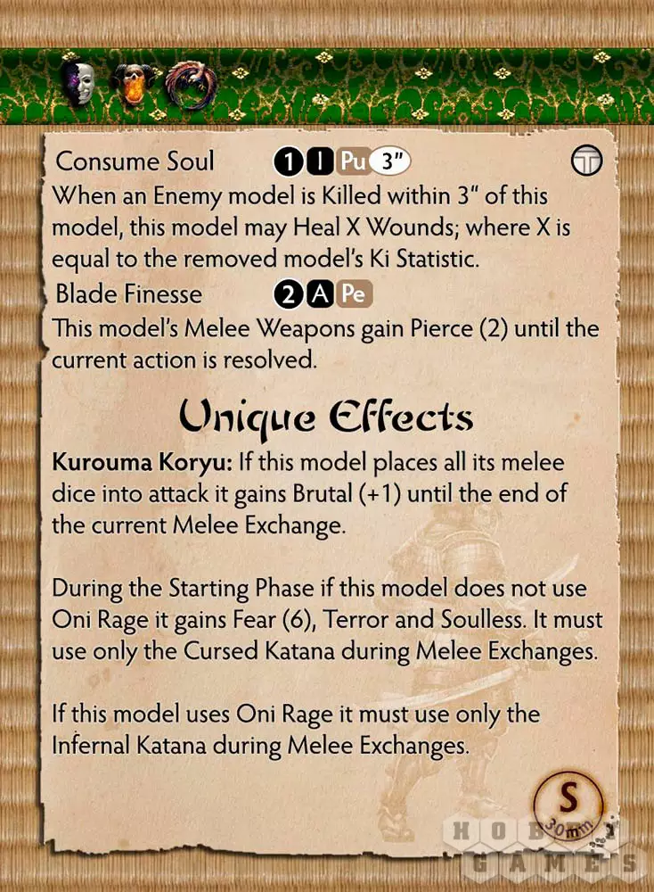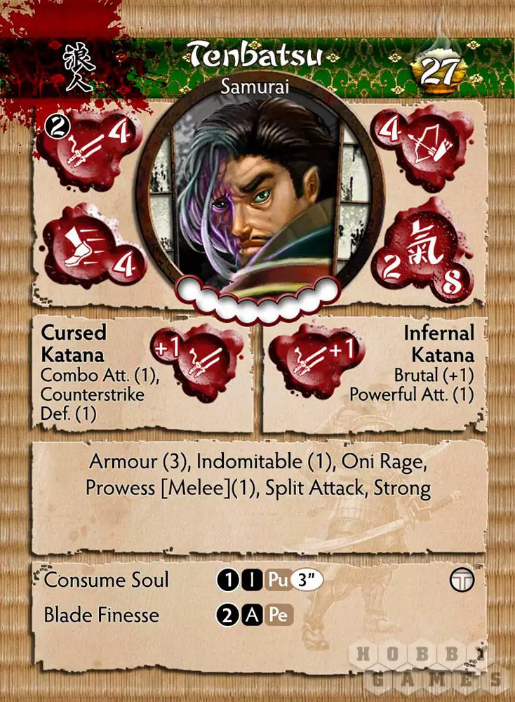 Курума Тенбацу – сломленный и извращённый человек. Род Курума был прерван более столетия назад. За время их недолгого существования сформировался всего лишь небольшой и незначительный клан, а Tenbatsu – это всё, что осталось от клана, ранее базировавшегося в Eastern Jwar. Последний сын клана самураев вряд ли даже человек, хотя то, чем он является, остаётся предметом споров. Некоторые говорят, что колосс человека – это извращенная душа, разрывающаяся между этим миром и Jikoku из-за своих грехов. Другие говорят, что этот человек мёртв, и что проклятые мечи, которые он должен всегда носить с собой, постоянно борются за контроль над ним. Третьи считают, что он продал свою душу ради вечной жизни, тем самым зайдя на сторону тёмного пути. Известно только то, что его союзники одинаково уважают и боятся его, поскольку он бесчеловечно силен и свиреп. Этот проклятый воин вселяет страх в сердца всех, кто осмелится противостоять его убийственному неистовству.
