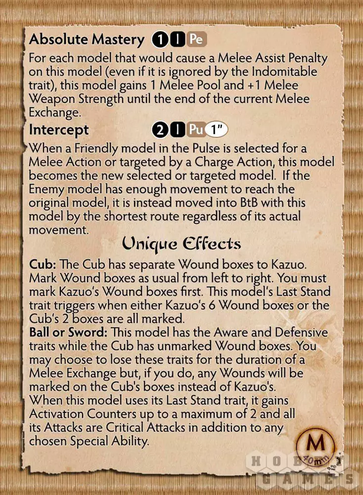 После того как Tsuki возглавила открытое восстание Tsumaga против префектуры, семья Takashi стала опасаться своих соседей. Чтобы обеспечить лояльность клана Wolf для следующего поколения, Dragon предложил взять на воспитание наследника Tanaka, сына Nobuko, семье Takashi в Eddo. Воспитание – старая традиция, и для клана большая честь, когда его сюзерены обучают своих детей пути самурая. Это укрепляет узы, связывающие кланы вместе, и создает лояльных вассалов. От такого предложения нельзя отказаться, не вызвав дипломатического скандала или объявления войны. Наследника Tanaka вместе с дядей Kazuo отправили в Eddo, резиденцию клана Dragon, но они изменили свои планы и отправились в Ryu. Приём на воспитание был согласован, поэтому у Takashi не было причин звать Tanaka. Мальчик стал учиться в Ryu под руководством наставников клана Wolf и изучал обычаи своей семьи, а не Takashi. Однако не всем это понравилось, представитель префектуры увидел мальчика и его дядю и попытался силой провести их в Eddo вместе с вооружённой охраной. Разгневанный тем, что чиновник более низкого ранга пытался навязать ему путь, Kazuo отказался. Ни один из Ashigaru префектуры не пережил его отказа. Зная, что эту ситуацию не получится объяснить, Kazuo взял мальчика и сбежал. У лорда Nobuo не было другого выбора, кроме как объявить Kazuo преступником, заявив, что он похитил своего сына, иначе у Dragon была бы причина заявить, что клан Wolf нелоялен. Теперь, когда ему некому помочь, Kazuo не только учит мальчика волчьим способам боя на мечах, их верности Shiho и премудростям самураев, но и умению защищаться от резидентов клана Dragon.