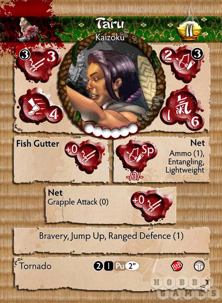 Храбрый и опытный моряк, он использует свою сеть как барьер для защиты от направленных в него снарядов, а также, чтобы атаковать ими же противника. Шустрый и быстроногий Taru – отличный солдат Jung.