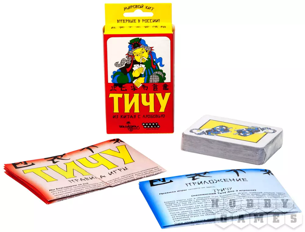 "Тичу" – это народная китайская игра, которая покорила сердца многих любителей настольных игр по всему миру и теперь добралась до России! Поделитесь на две команды и совместными усилиями постарайтесь одержать победу. Спасайте своего напарника, выкладывайте выгодные комбинации, блефуйте, разыгрывайте особые карты - и вскоре вы сможете победить китайских мастеров "Тичу".