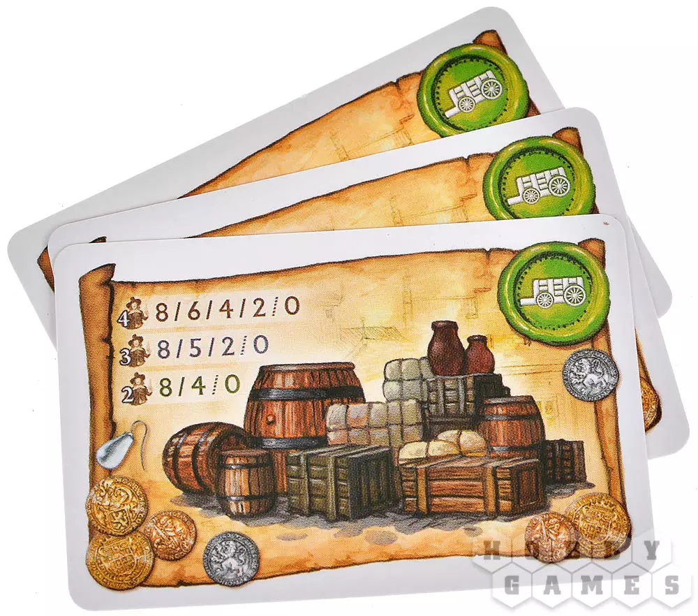 Если путь содержит символ тележки, игрок дополнительно получает одну карту ходовых товаров. Эти карты в конце игры приносят бонусные очки – чем больше их у вас, тем выше шанс занять призовое место в этой категории.