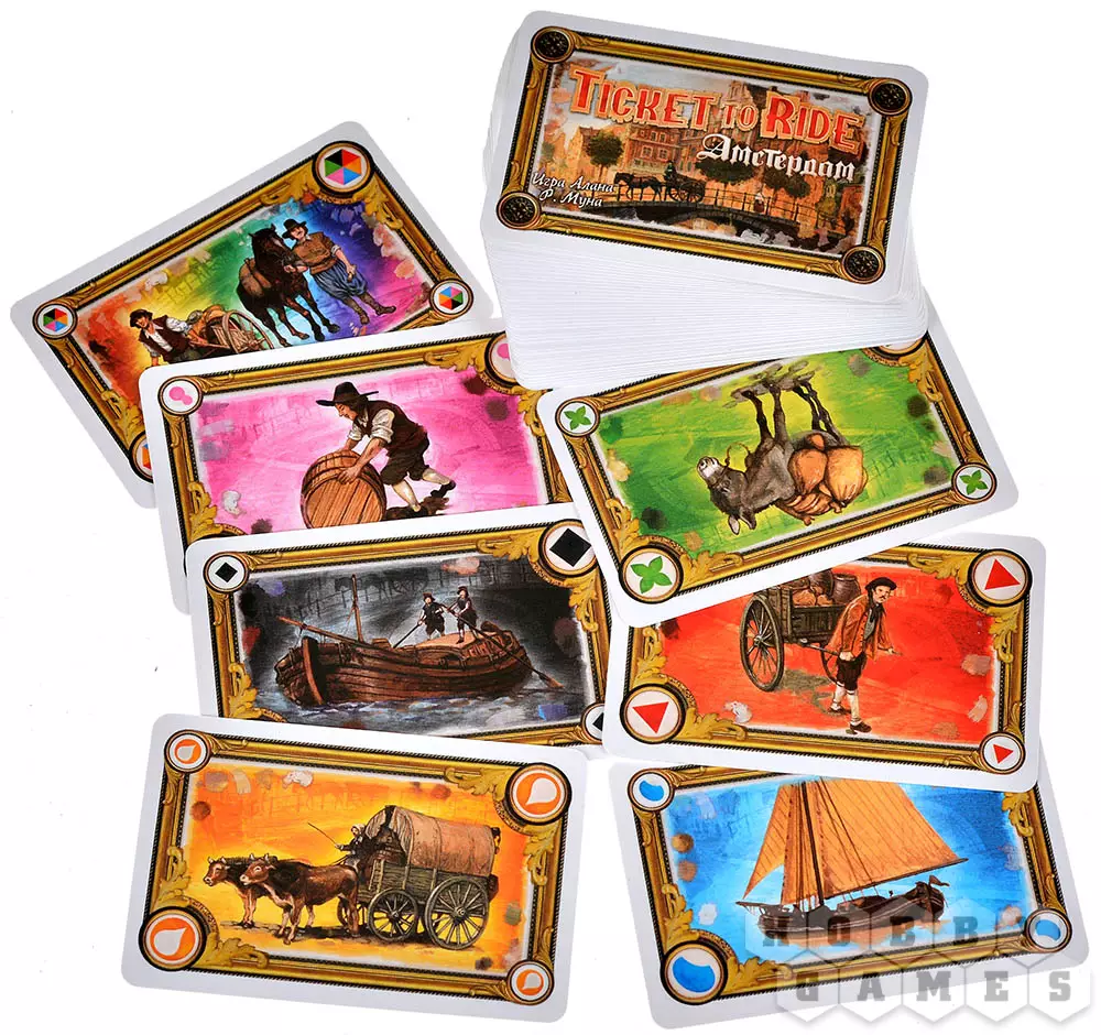 Карты перевозок соответствуют цветам путей на карте Амстердама. Чтобы пройти путь, необходимо сбросить с руки нужное количество карт одного цвета и занять его своими тележками. Джокеры могут заменять карты любого цвета. Некоторые пути серого цвета – для них допустим любой единообразный цвет. Каждый пройденный путь приносит победные очки в зависимости от его длины.