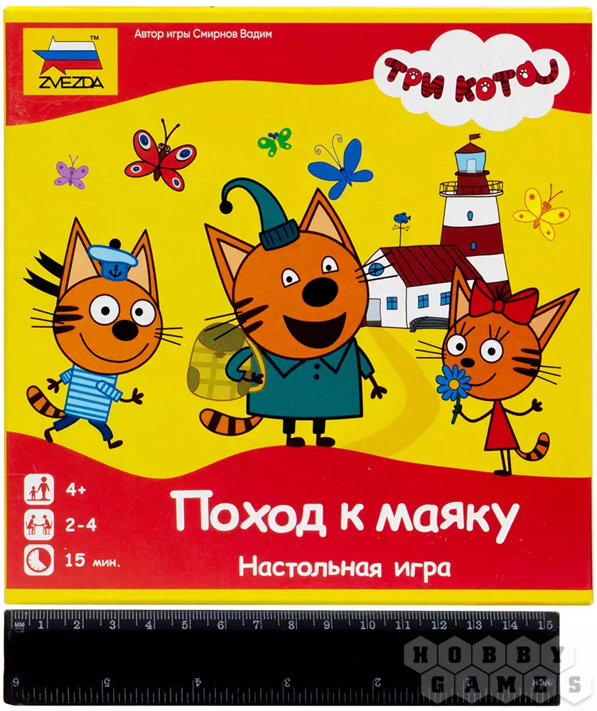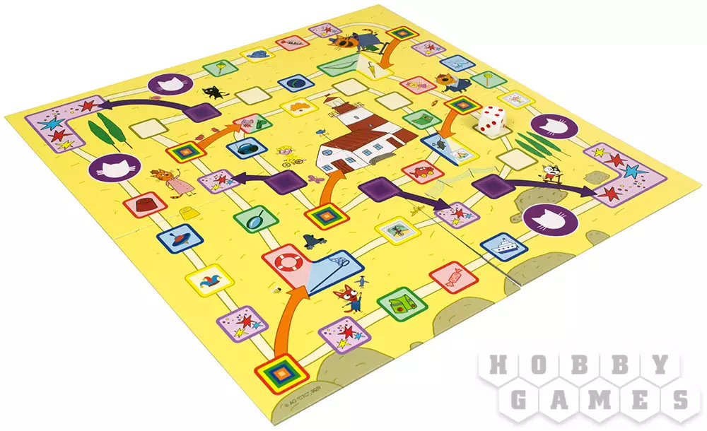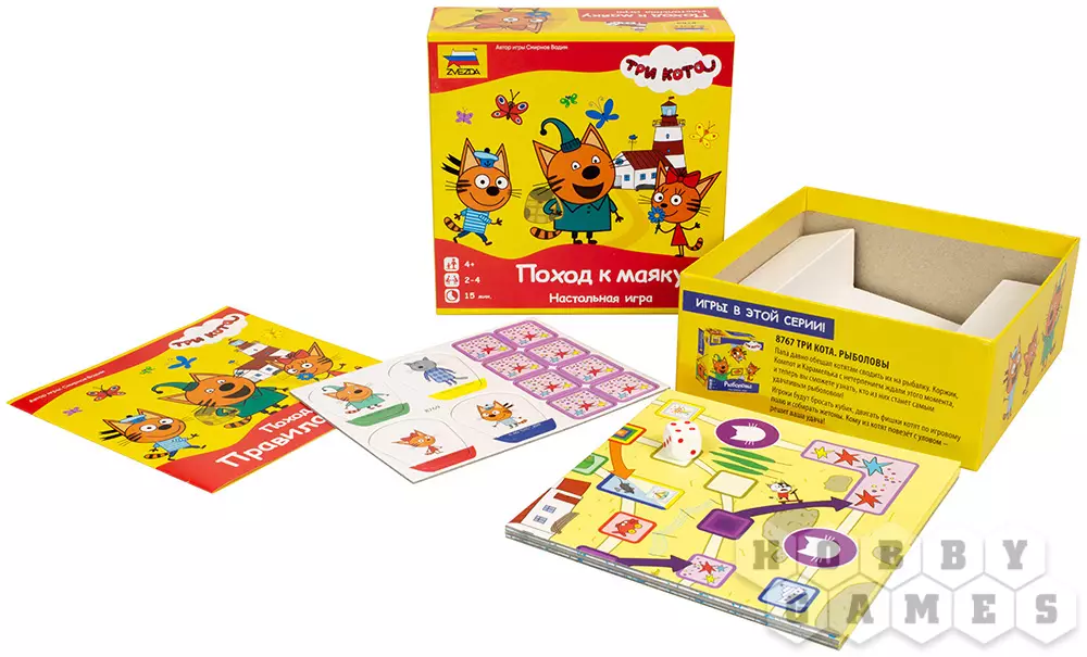 В настольной игре "Три кота. Поход к маяку" вещи котят оказались разбросаны у подножия маяка. Котята решили объединить полезное занятие с игрой. Так вещи стали сокровищами, а котята отважными исследователями. Бросайте кубик, передвигайте персонажей и соберите их все.