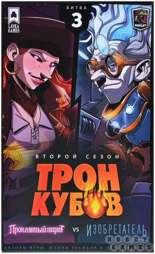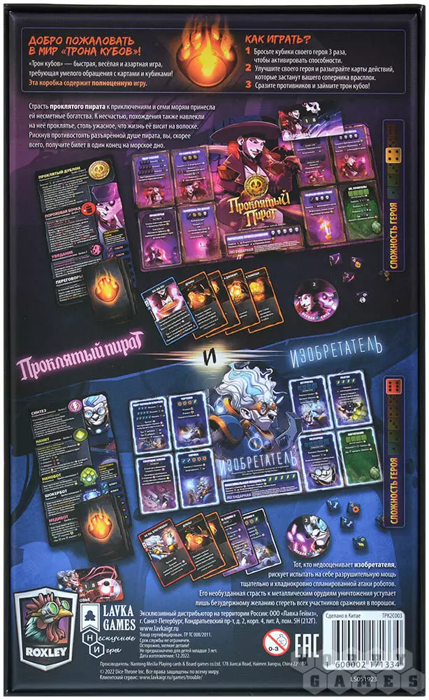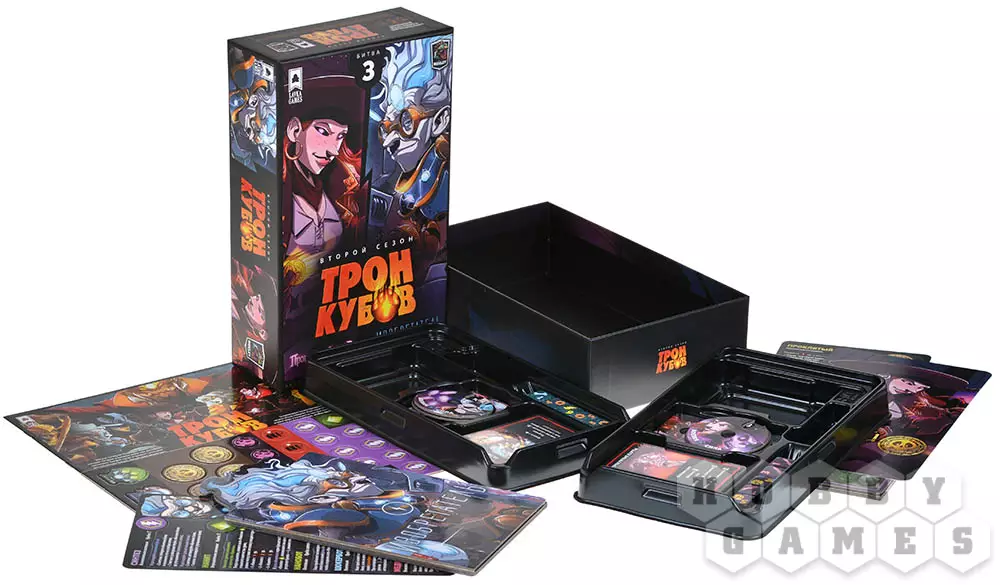 "Трон кубов" – это серия дуэльных настольных игр, посвящённых противостоянию героев с уникальными способностями. Быстрые партии, простые правила и великолепное оформление – вот главные преимущества серии. Каждая часть игры содержит в себе два комплекта героев, а если объединить несколько коробок, то получится сыграть и в одном из нескольких командных режимов: 2x2, 3x3 или даже 2x2x2. Играть и правда очень просто: сперва вы бросаете кубики, чтобы получить необходимую комбинацию и активировать одну из способностей, потом улучшаете способности и разыгрываете карты действий. Как только здоровье одного из героев снижается до нуля, он погибает и проигрывает.