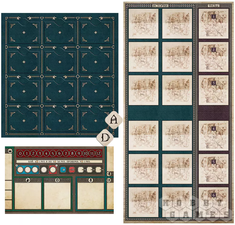 Подготовьте игровое поле, планшет приключений и планшет ориентиров. В последний вставьте лист того приключения, в которое вы собираетесь отправиться. Всё готово, можно выдвигаться в путь!