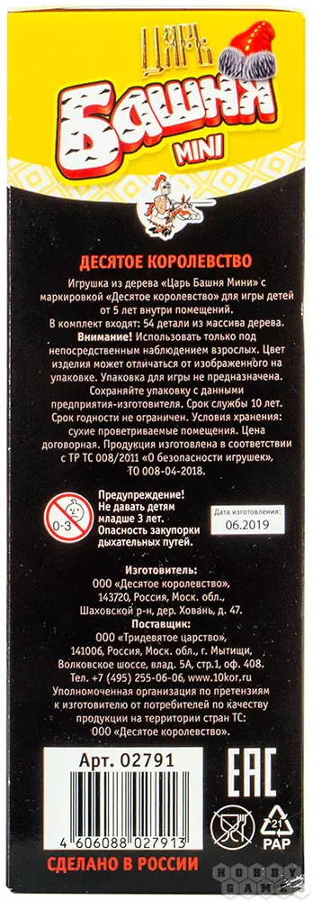 Простейшие правила и уникальность каждой партии делают настольную игру "Царь Башня Мини" популярным хитом среди настольных игр.