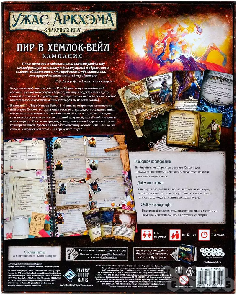 "Пир в Хемлок-Вейл. Кампания" – это дополнение, с которым вы вместе с исследовательской экспедицией отправитесь на окутанный мраком остров Хемлок. Это станет настоящим испытанием для рассудка и смелости, ведь остров таит в себе тайны, от которых вздрогнет даже самый отважный исследователь.