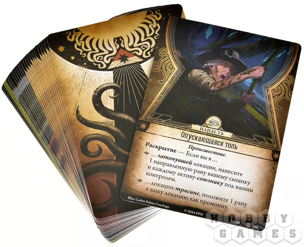 Игроки управляют действиями персонажей посредством своей колоды сыщика. Сценарии ведут кампании, предлагая интереснейшее приключение.