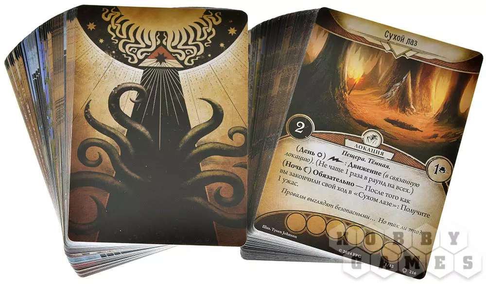 "Ужас Аркхэма. Карточная игра" – это кооперативная Живая Карточная Игра в сеттинге мифов Лавкрафта, в которой 1-2 сыщика (а со вторым набором – 3-4) совместно познакомятся с миром оккультизма, древних богов и тайн, параллельно борясь и с внутренними демонами из своего прошлого.