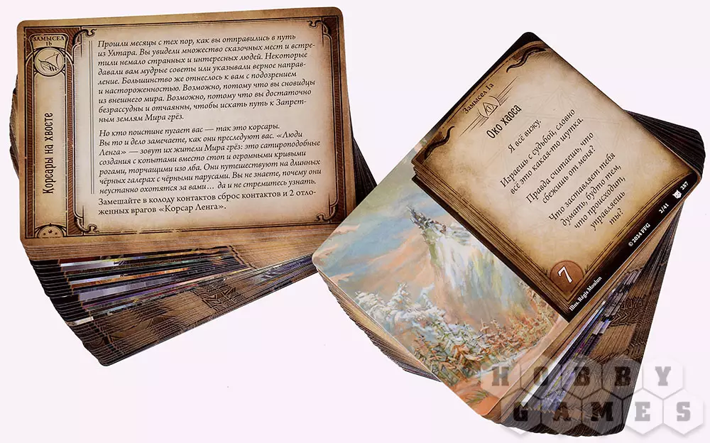 Игроки управляют действиями персонажей посредством своей колоды сыщика. Сценарии ведут кампании, предлагая интереснейшее приключение.