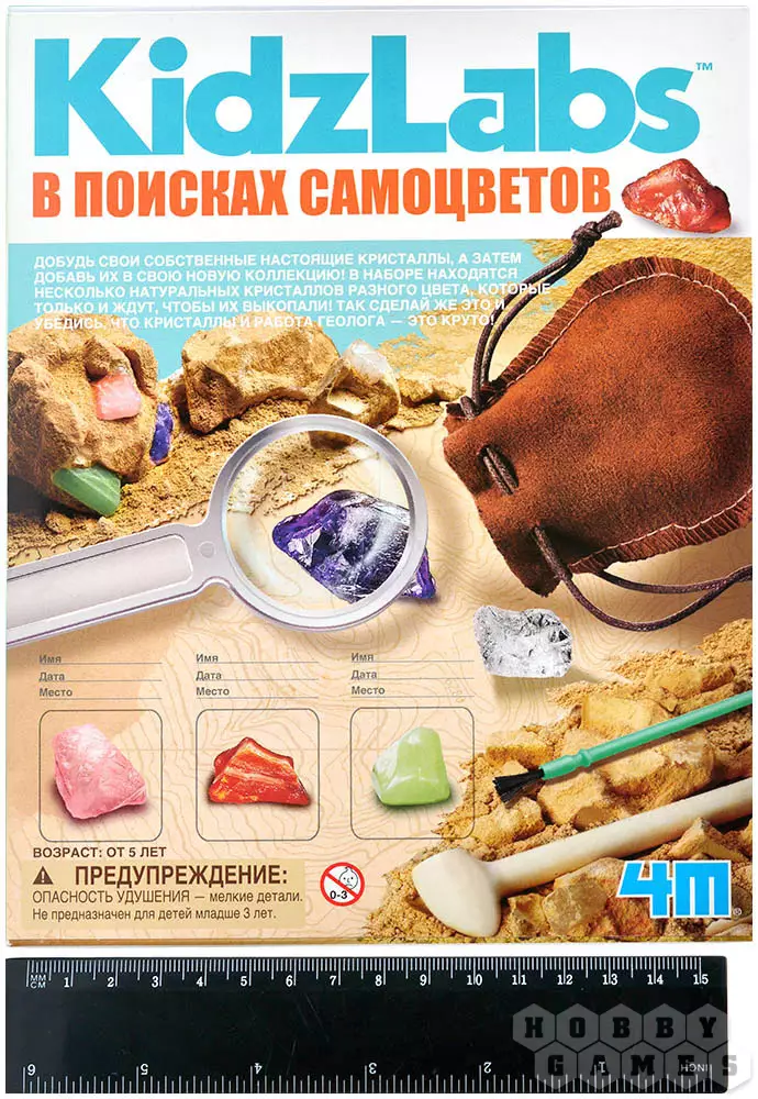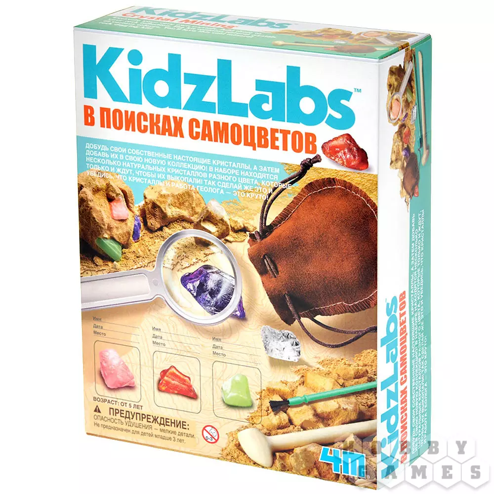 "В поисках самоцветов" – это необычный и очень интересный набор, который познакомит детей и взрослых с увлекательным процессом раскопок. С его помощью вы собственными руками добудете из гипсового блока 8 самых настоящих кристаллов! В состав уже входит всё необходимое для предстоящих работ.