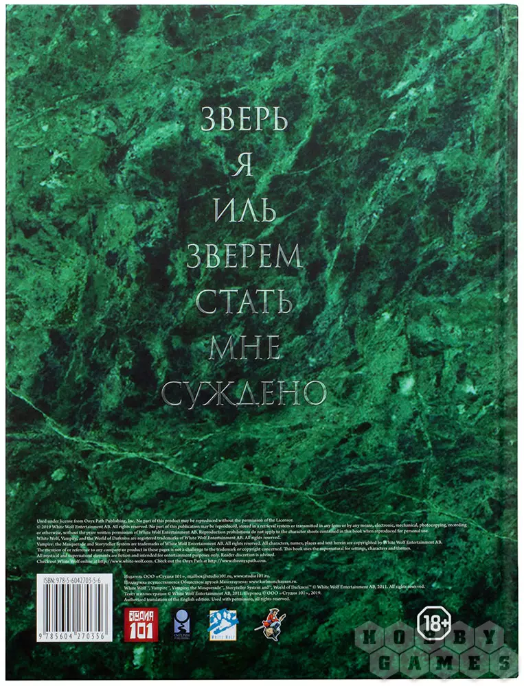 Вячеслав12.09.2021 18:50Шикарнейший рулбук, с отлично поданым лором и механиками вампирской ветки Мира Тьмы. Играется на ура, да настолько, что игроки почти силой требовали продолжения! :D Но надо признать, что с порога осилить все механики разом - малость impossible) PS Было бы круто увидеть в продаже пак вампирских d10 -