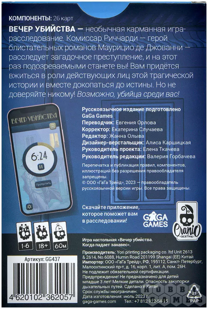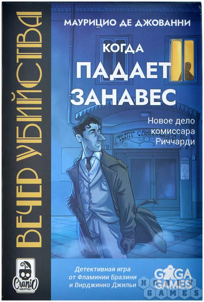 "Вечер убийства" – это захватывающая серия детективных карточных игр, вдохновлённая историями знаменитого итальянского писателя Маурицио Де Джованни о храбром Комиссаре Риччарди.