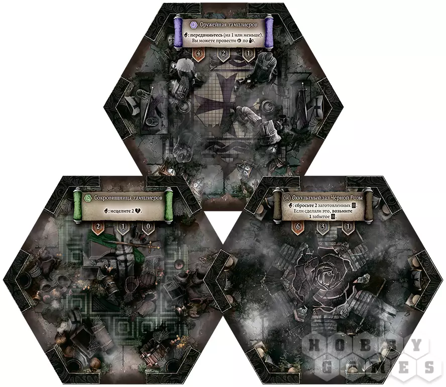 Этап действий позволяет вам разыграть задуманную стратегию. С помощью жетонов физических действий вы сможете переместиться в другую комнату, провести атаку, активировать выбранные заклинания или иное.