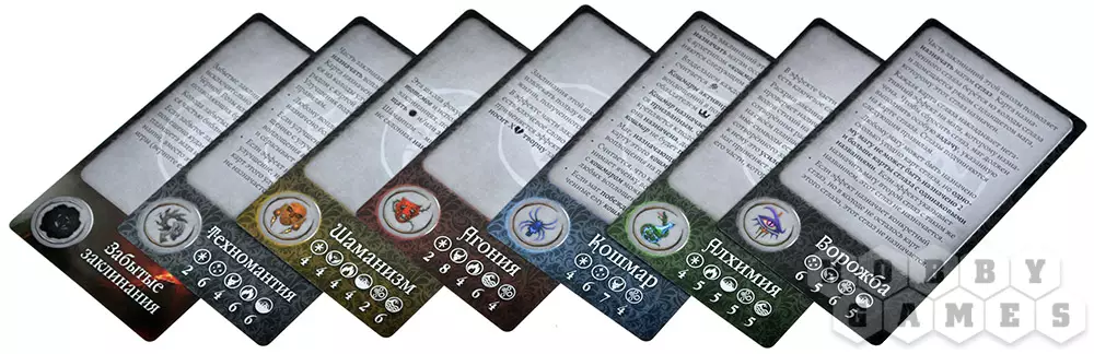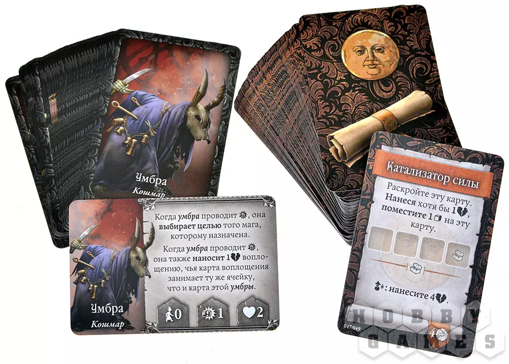 Размер карт: 119x69 мм (рекомендуются протекторы из данного раздела, 7 шт.)