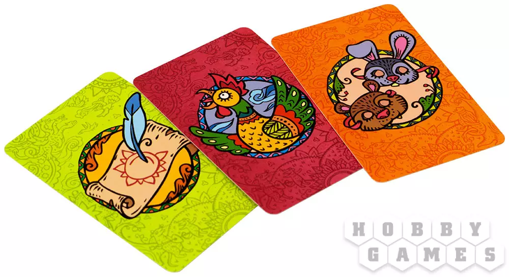 27 карт действий (9 разноцветных комплектов по 3 карты в каждом)