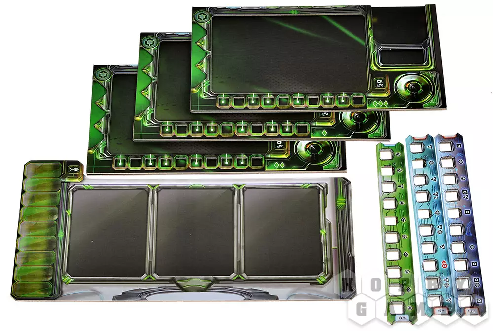 Уделим особое внимание фазе действий, так как это основная часть вашего хода. Вам доступны следующие варианты: перемещение с потенциальной возможностью раскрыть и активировать новую комнату, атака, экранирование (то есть защита), конфигурация (оптимизация ресурсов), заражение (размещение жетонов вирусов, которых у вас ограниченное количество, в комнатах базы данных; их количество повышает уровень вашей угрозы), выход (отключение аватара от системы), переподключение и улучшение (изменение характеристик с помощью соответствующих фишек и деки). Количество ваших действий ограничено значением кликов в слоте процессора, но тип вы можете выбирать сами.