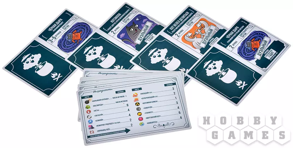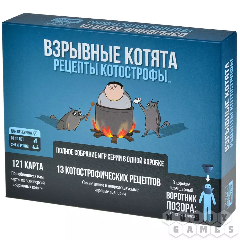 Да-да, вы всё правильно поняли: "Взрывные котята: Рецепты котострофы" включает в себя 121 карту из других версий игры и дополнений (даже из тех, что ранее не издавались на русском языке)! Прекрасно сбалансированный микс для опытных новичков и начинающих мастеров. Или наоборот. Но главная изюминка "Рецептов котострофы" сокрыта в самих картах рецептов, которые предлагают целых 13 новых вариантов игры! Каждый рецепт обладает уникальными нотками, которые обязательно захочется распробовать. Только чур карты не жевать!