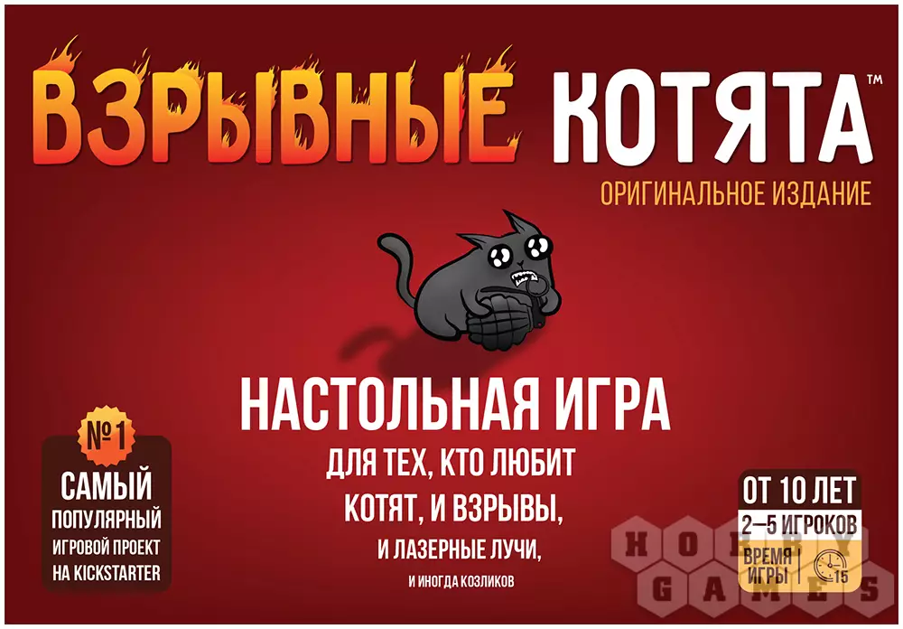 "Взрывные котята" – это нашумевший карточный хит с площадки "Кикстартер", где он побил все мыслимые рекорды и сразу же влюбил в себя более двухсот тысяч человек по всему миру. Игра крайне проста в освоении и отличается уникальным дизайном, вы точно влюбитесь в этих прекрасных рисованных котят!