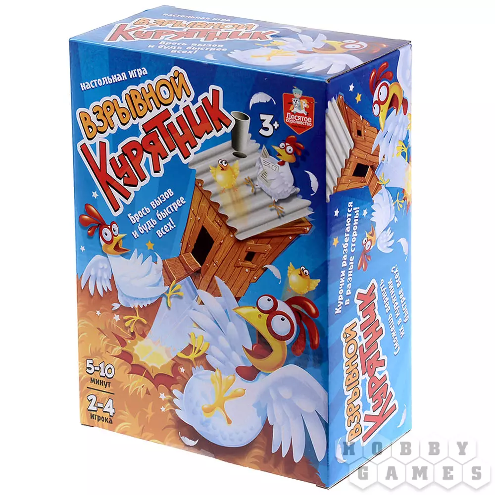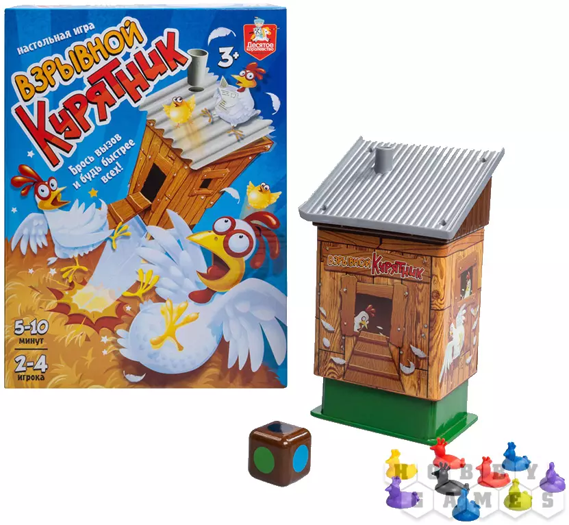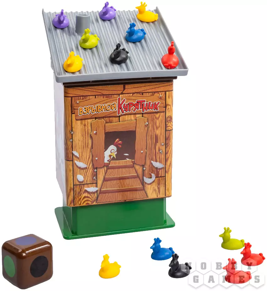 В центре стола устанавливается курятник, а игроки получают одинаковое количество разноцветных фигурок курочек. Кидая кубик, участники узнают, какого цвета курицу им предстоит посадить на крышу курятника. Но всё не так просто – этот курятник непростой, ведь в нём спрятан подпрыгивающий механизм. В любой момент он может активироваться, и курочки полетят во все стороны. Задача игрока – собрать свалившихся птиц, забрать себе троих и вернуть остальных на крышу.