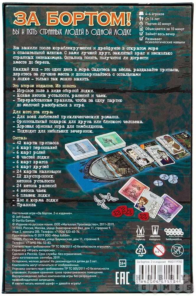 Вячеслав25.05.2022 09:53Просто шикарный патигейм, но до шести участников. Если вас больше шести. то обязательно берите дополнение, там еще два колоритных персонажа добавляется. Игра конфликтная, переговорная, веселая. Но не для робких, которые предпочитают просто "кинь-двинь-собери-меня не трогай". Нет, тут весь фан в общении, во взаимодействии, в желании поработать локтями. Ведь в игре можно отобрать оружие, драгоценную воду или же уговорить отдать это всё вам без драки и выбрасывания слабейшего за борт. А еще обязательно найдется тот, кому приглянулось ваше "хлебное" нагретое местечко в спасательной шлюпке рядом с источником припасов. Так что, поводов для разборок будет предостаточно! Если у вас заводная компания, берите игру, не пожалеете! ПС: Правила рассказываются на ходу. Ничего сложного. -