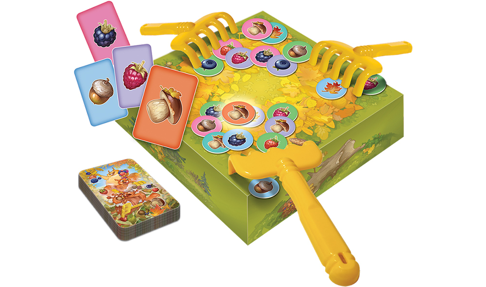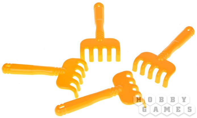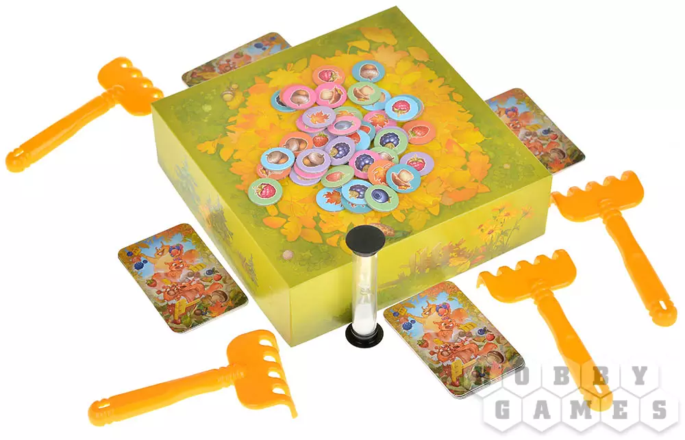 Всё начинается со звонкой команды – в этот момент каждый игрок открывает верхнюю карту из своей личной колоды. Теперь цель ясна: нужно первым найти на общей поляне точную пару – жетон, где и предмет, и его цветной фон совпадают с изображением на вашей карте! Действовать можно только граблями: поддевайте и осторожно сгребайте жетоны к своему краю игрового поля. Как только нужный жетон упадёт с вашей стороны, отложите грабли, заберите добычу и накройте ею карту. Затем сразу откройте следующую карту из своей стопки – и снова в бой!