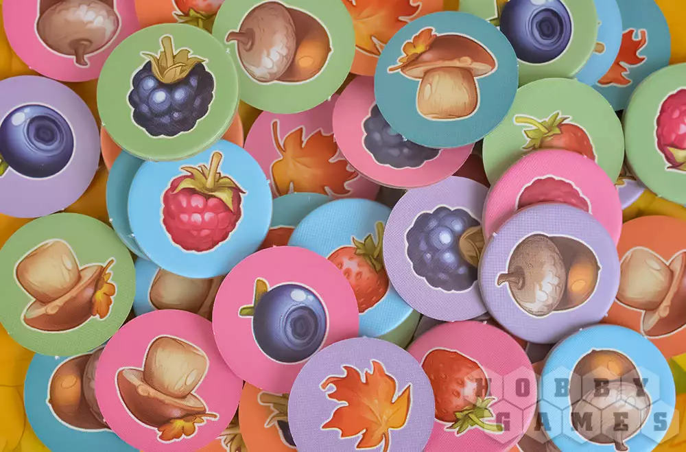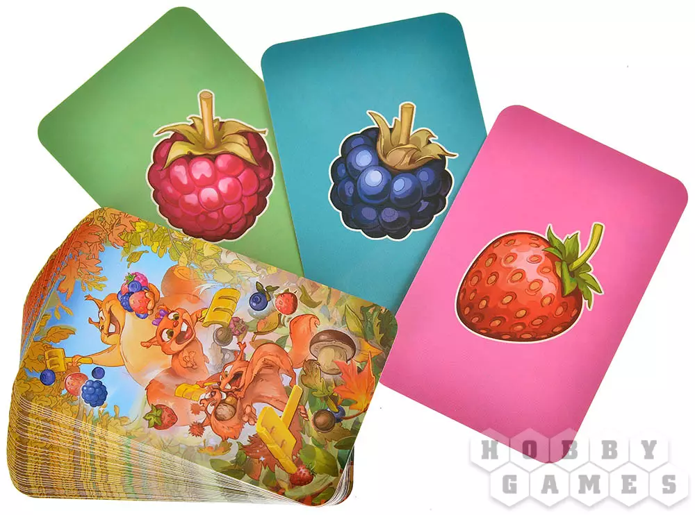 Переверните дно коробки – это ваша общая поляна. Рассыпьте все жетоны лакомств в её центре живой, пёстрой кучей. Каждый игрок садится у своей стороны поляны, получает грабли и свою секретную колоду из семи перевёрнутых карт. Положите одну руку на колоду, в другую возьмите грабли – можно начинать лесную суматоху!